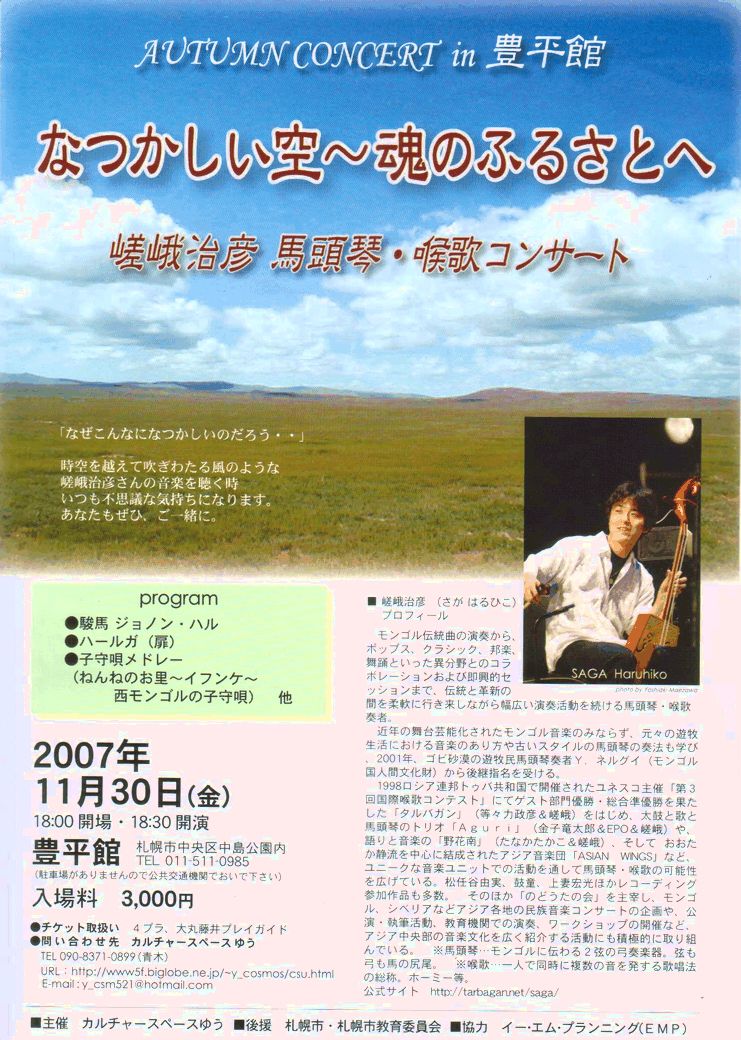 ●1/30(火)馬頭琴・喉歌コンサート