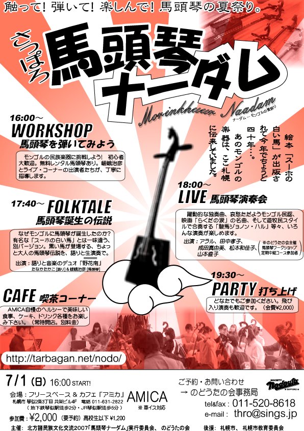 ●7/1(日) 「馬頭琴ナーダム!」 〜馬頭琴の夏祭り〜