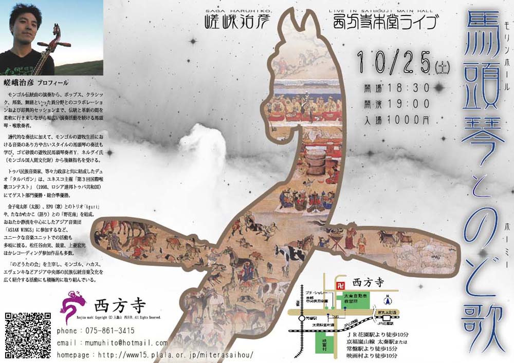 ●10/25(土) 西方寺本堂ライブ 「馬頭琴とのど歌」