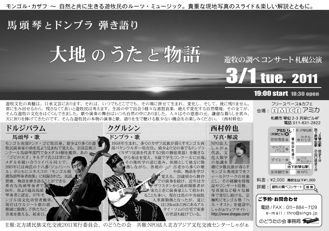 ●4/27(水)北星学園大学総合講義 「喉歌との出会い、馬頭琴での出会い」