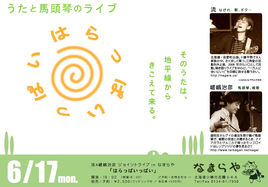 ●6/17(月) 流(ながれ) & 嵯峨治彦 ライブ 「はらっぱいっぱい」