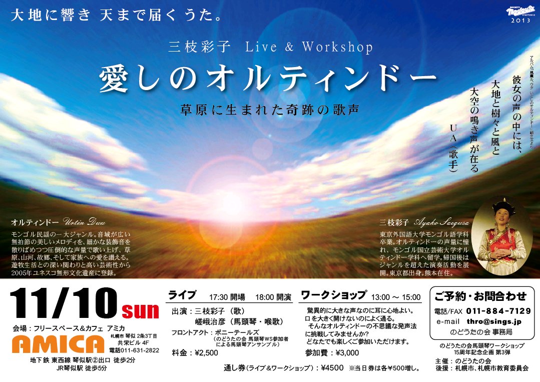 ●11/20(水) ホイスコーレ札幌 講義「草原の音楽〜馬頭琴と喉歌」