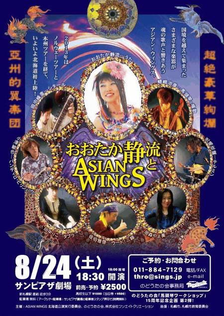そしてこの夏、8月上旬の広島・京都・東京での公演を経て・・・・・、アジアン・ウィングスがいよいよ北海道にやって来る!