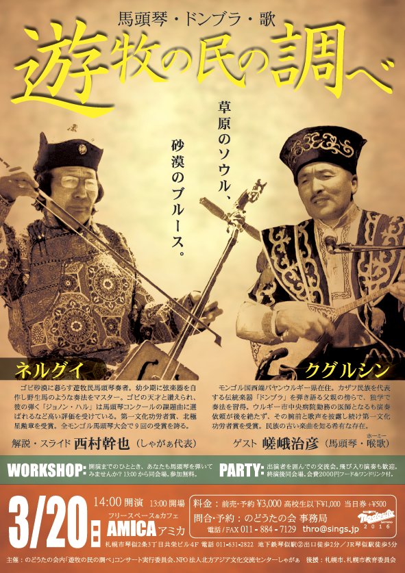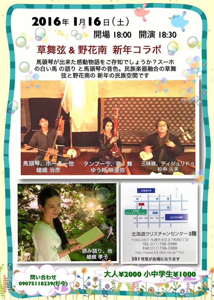 ●3/8(火)馬頭琴コンサート in 札幌 北の星白石保育園