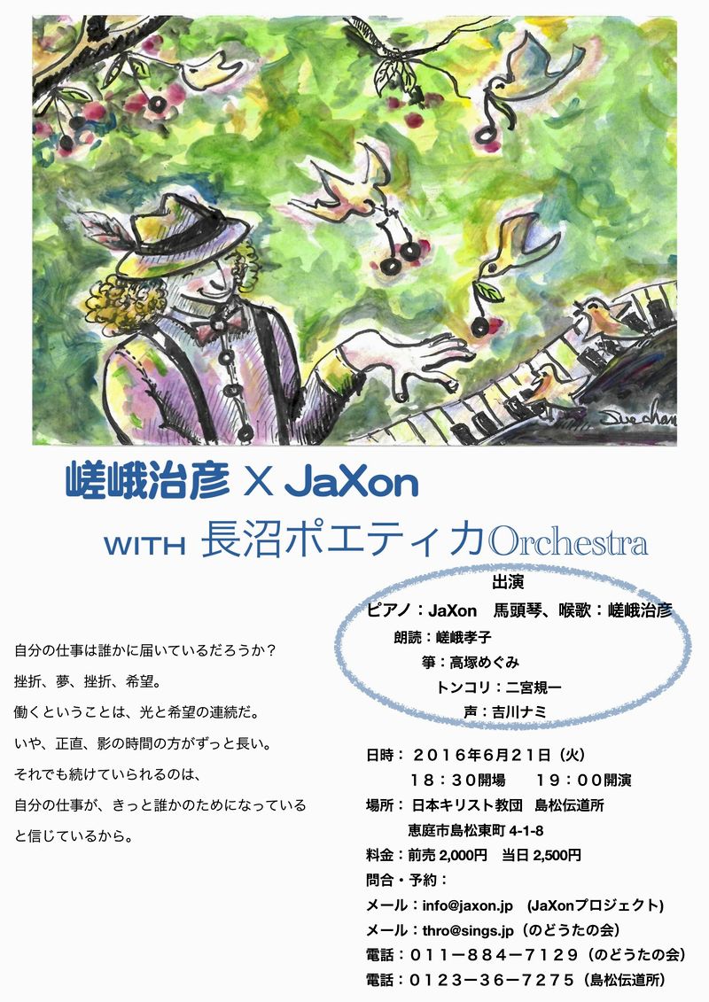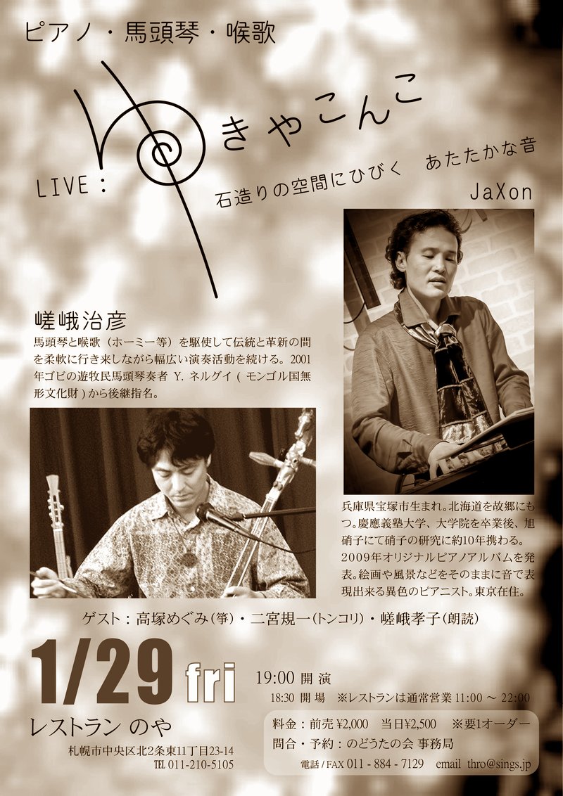 JaXon & 嵯峨治彦スペシャルライブ ♪ピアノと馬頭琴 天使が舞い降りる初夏の彩♪