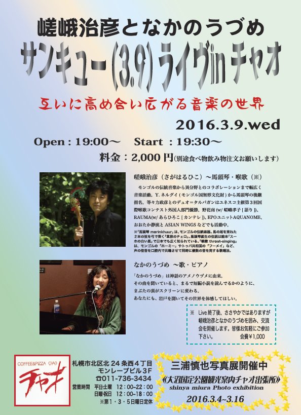 ●3/9(水) 嵯峨治彦となかのうづめのサンキューライヴ