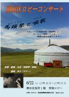 ●6/22(水)清田区ロビーコンサート 「馬頭琴と喉歌」