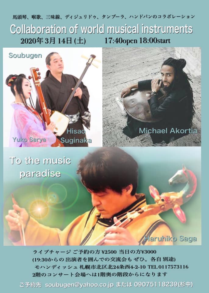 ●3/14(土) 世界の楽器のコラボレーション※新型コロナウィルスの懸念により、キャンセルになりました。
