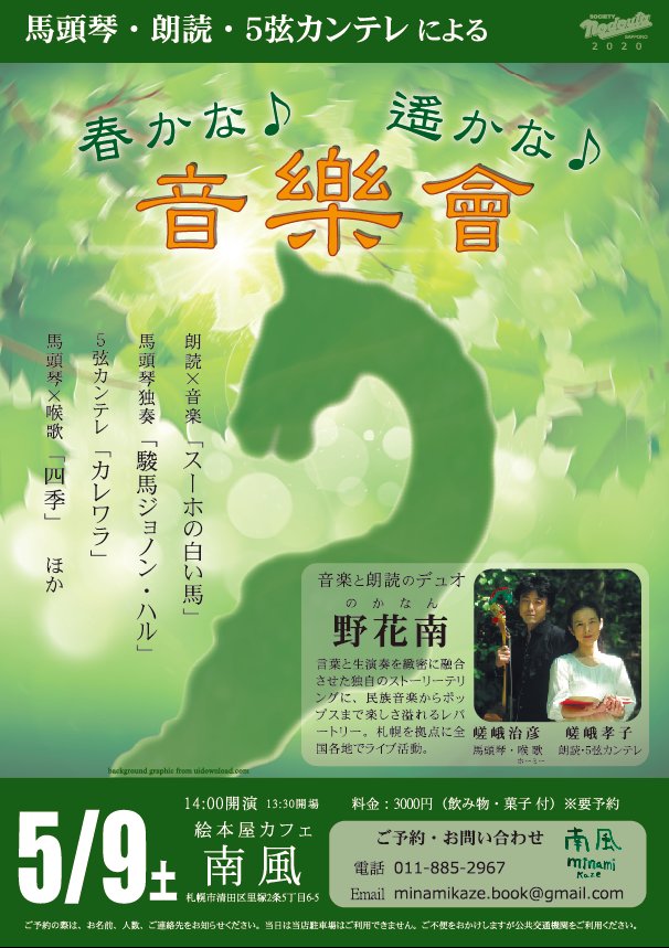 音樂會」 野花南 ライブ in 南風※新型コロナウィルスの影響で延期になりました。