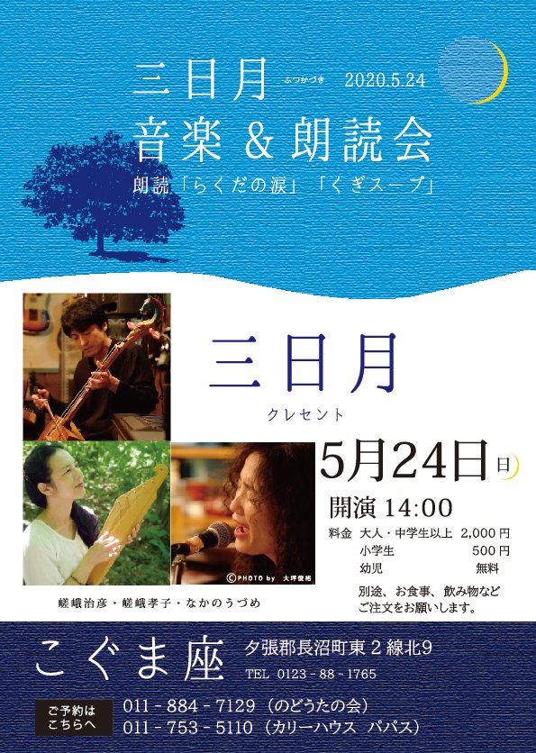 ●5/2(土) 上弦の月 音楽&朗読会※新型コロナウィルスの影響で延期になりました。